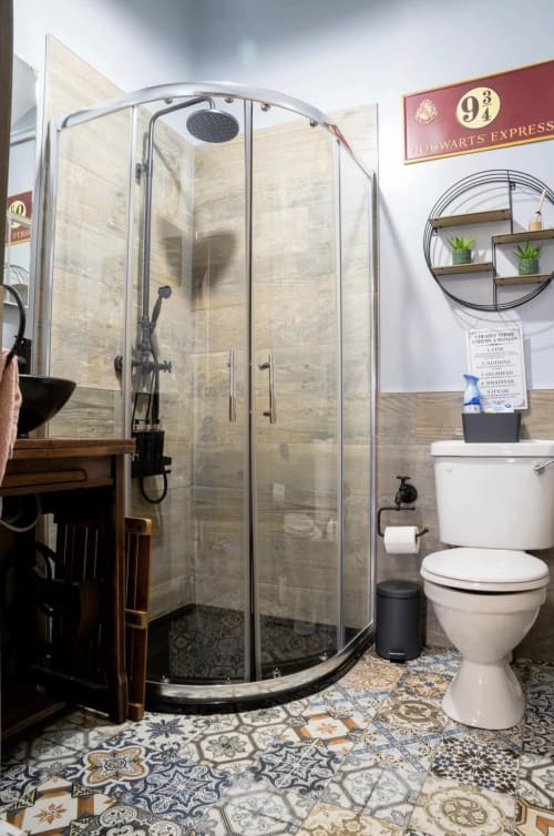 Greenville Apartment is one bedroom room apartment featuring a king size bed on the first floor with bathroom and shower.